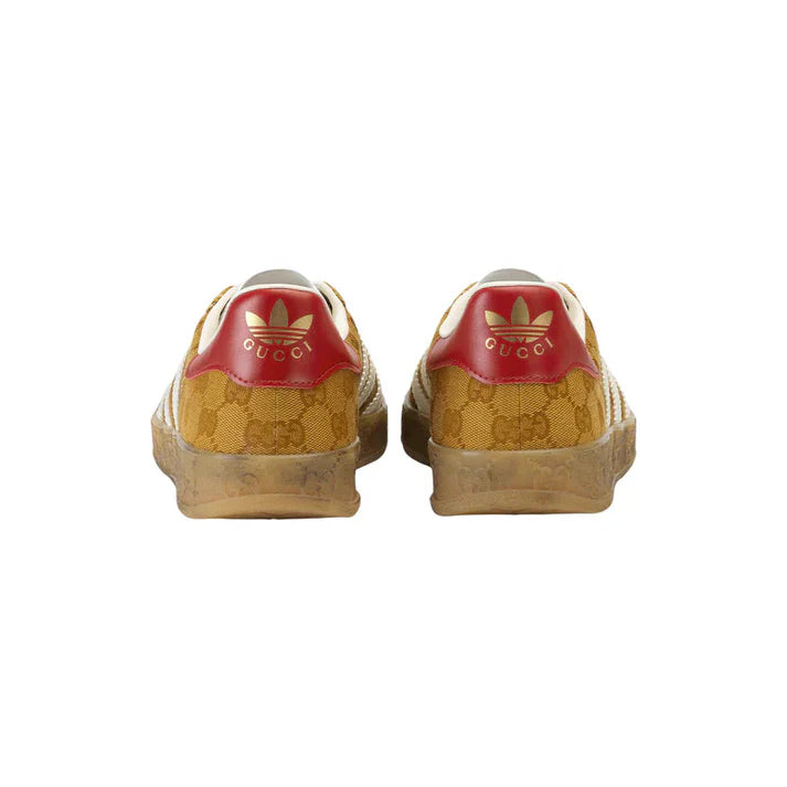 The Golden Regent Heritage Monogram Gumsole Sneaker blends vintage sport styling with a luxurious modern aesthetic. The patterned textile upper adds a refined visual texture, highlighted by clean contrast stripes that emphasize its classic low-profile silhouette. A soft interior lining provides comfort for daily wear, while the gum outsole delivers a timeless finish with a stable and flexible step.